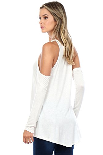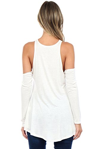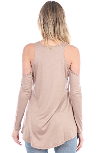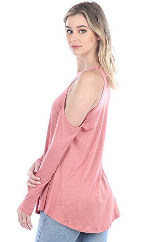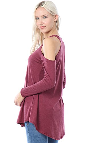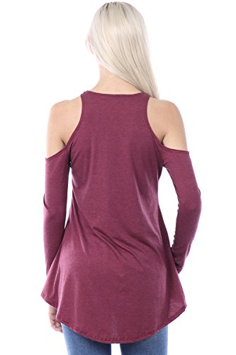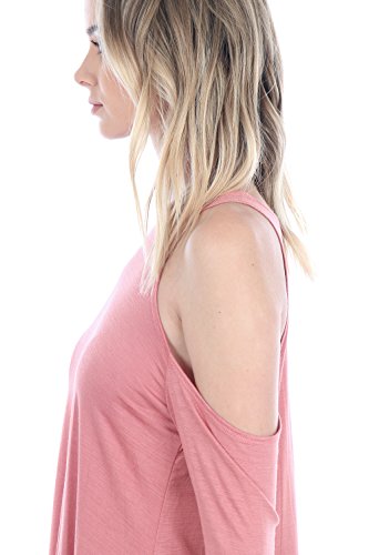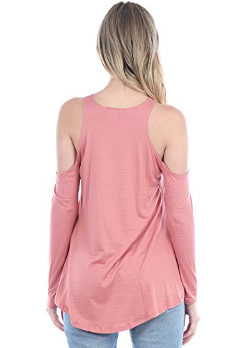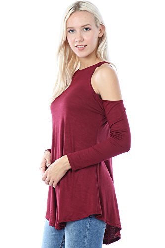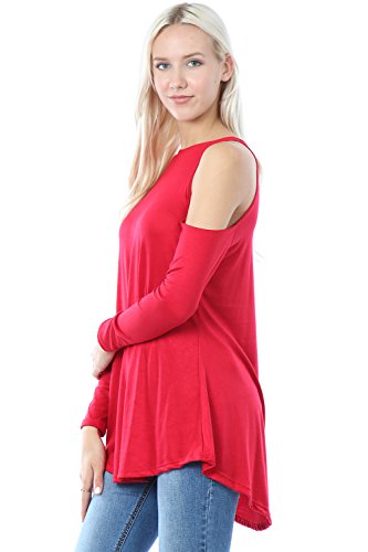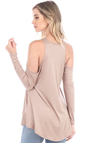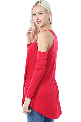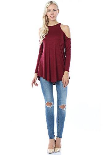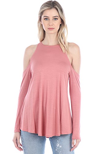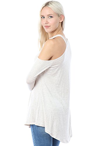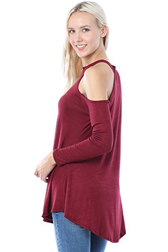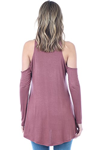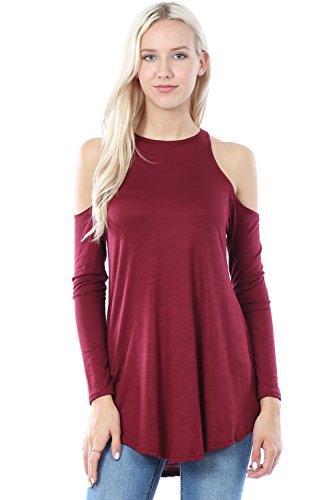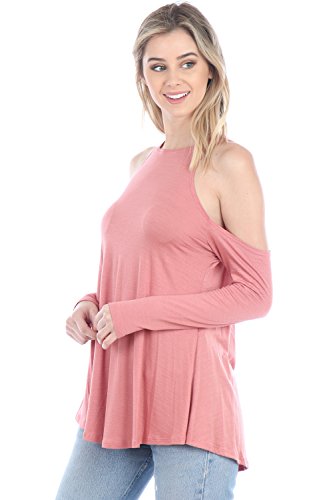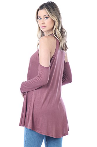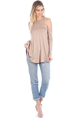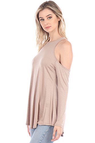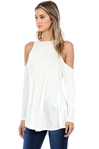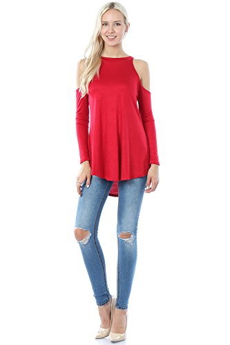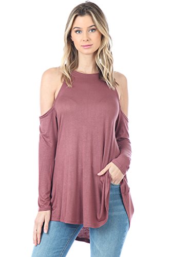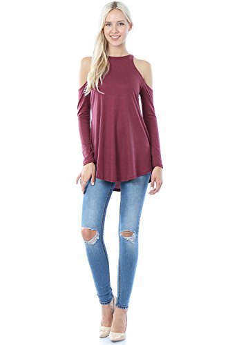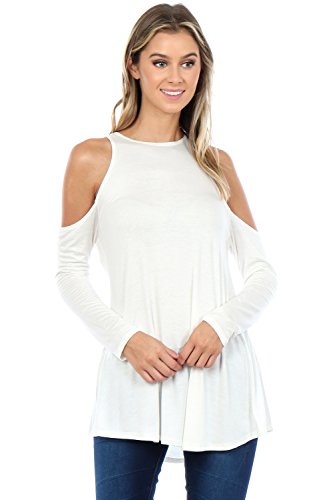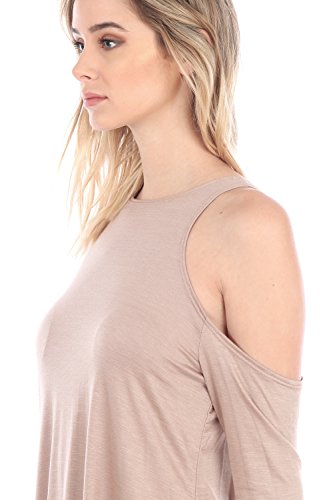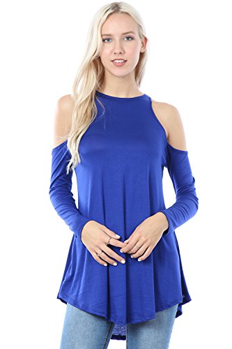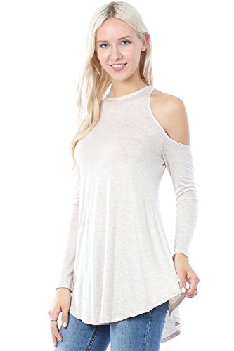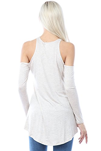 | Made In USA High Neck Cold Shoulder Long Sleeves Relaxed Fit Flare Tunic Top |