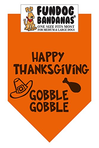 -. Binding : Misc. -. Brand : FunDog Bandanas -. Color : Burnt Orange -. EAN : 0083351957391 -. Feature : Cute! / Fun! / Affordable! / Makes a great gift! / 22x22x31inches -. Label : The Dog Perk Corporation -. Manufacturer : The Dog Perk Corporation -. PackageQuantity : 1 -. ProductGroup : Pet Products -. ProductTypeName : PET_SUPPLIES -. Publisher : The Dog Perk Corporation -. Size : One size fits most for medium to large dogs -. Studio : The Dog Perk Corporation -. Title : BANDANA - Happy Thanksgiving for Medium to Large Dogs - Burnt Orange -. UPC : 083351957391