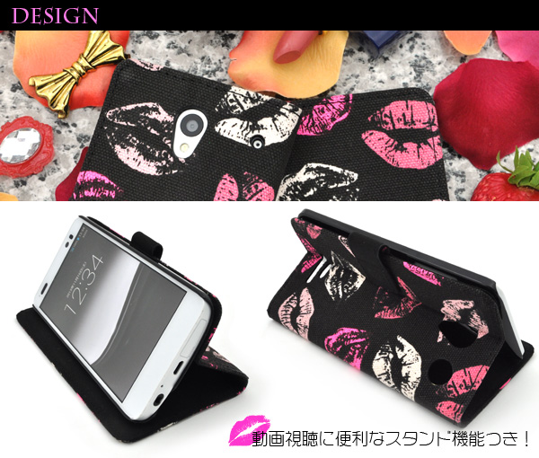 黒地に大胆にあしらわれたリップがおしゃれなケースです。