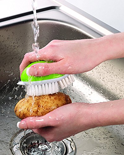 -. Binding : Kitchen -. Brand : Kitchen Gadgets -. Color : White, Green -. EAN : 0709317928174 -. Feature : Angled soft nylon bristles for delicate product like mushrooms and strawberries. / Stiff straight nylon bristles for firm produce like potatoes and carrots. / Rounded top handle, for easy holding and cleaning. / Top rack dishwasher safe. / BPA Free, made with food grade materials. -. IsAutographed : 0 -. Model : 5532441 -. MPN : 5532441 -. PartNumber : 5532441 -. ProductGroup : Home -. ProductTypeName : HOME -. Title : Fruit and Vegetable Brush -. UPC : 709317928174