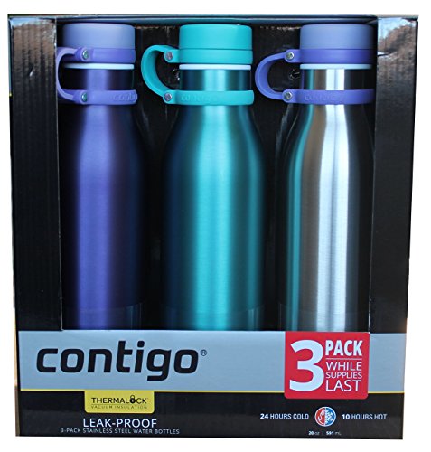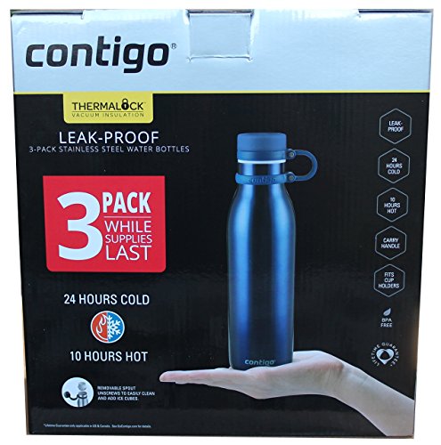 -. Title : Contigo ThermaLock Insulated Stainless Steel Sports Water Bottle | Leak Proof | 20 ounces | Gift pack of 3
