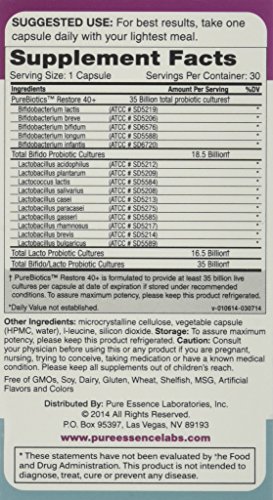 -. Binding : Health and Beauty -. Brand : Pure Essence -. Label : Pure Essence -. Manufacturer : Pure Essence -. NumberOfItems : 1 -. PackageQuantity : 1 -. ProductGroup : Health and Beauty -. ProductTypeName : HEALTH_PERSONAL_CARE -. Publisher : Pure Essence -. Studio : Pure Essence -. Title : Pure Essence Pure Biotic Restore Vegetarian Capsules
