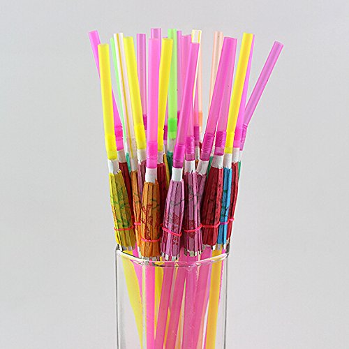 -. Brand : Fashionclub -. Feature : Small colorful paper parasol umbrellas attached to plastic straws, simply push up on umbrellas to open. / These umbrella straws are perfect for a themed party or simply for home use! / Each has a paper parasol that expands out from the straw / Each straw measures 9.5" and extends to 10" inches long. Umbrella is approximately 3" inches wide when opened. / erfect for both children and adults alike -. Label : fashionclubs -. Manufacturer : fashionclubs -. ProductGroup : Kitchen -. ProductTypeName : KITCHEN -. Publisher : fashionclubs -. Studio : fashionclubs -. Title : Fashionclubs Multicolored Tropical Umbrella Straws/Disposable Bendable Drinking Straws for Party Kitchen Supplies Bars Restaurants