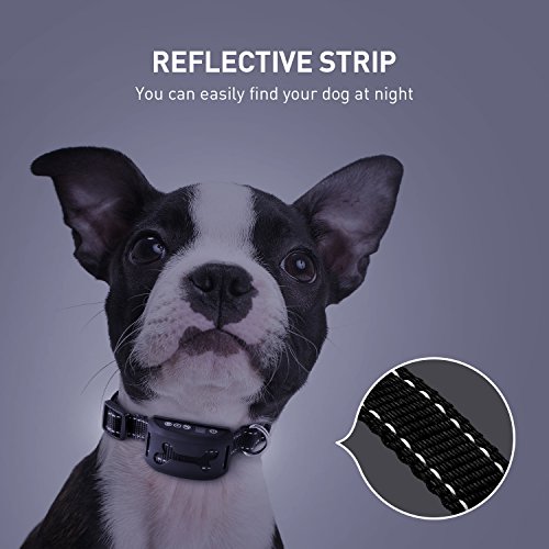 Features ?Automatic Protection: The automatic protection mode will deactivate the collar if it has been activated 7 times in 1 minute, but it will back to work after 1 minute. ?Adjustable mode: 1-7 level adjustable sensitivity, 0-7 gears of the vibration/shock, you can choose sensitivity and power level according to instructions or the actual needs of your dog. ?Rainproof Function: This collar is suitable for all activities of your dogs, no matter indoor or outdoor. ?Adjustable Reflective Belt: It allows you to keep an eye on your dog even in low visibility environment. ?Rechargeable bark collar:Each bark collar contains a built-in USB rechargeable battery and 1 hour of charge time gives you 2 weeks of use.