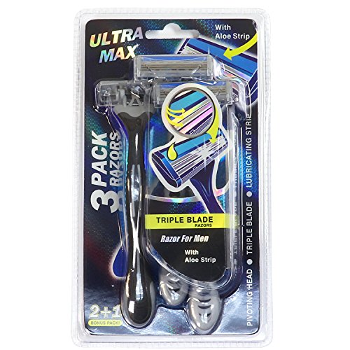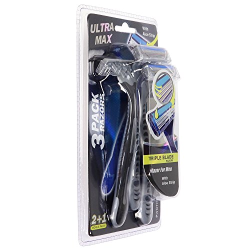 Ultra Max Disposable Razors for Men Triple Blade With Aloe Strip Shave Pack of 3