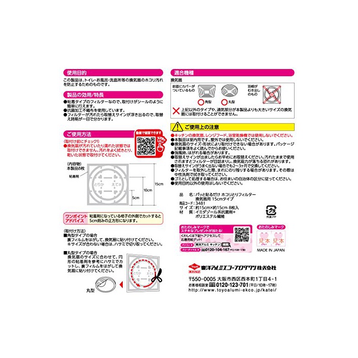 동양 알루미늄 【(정리)수습구매】 갑자기 붙이는 것 뿐(만,만큼)! 먼지 잡아 필터 환기팬용 약15cm×15cm 8매입×2개