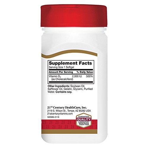 Studio : 21st Century Publisher : 21st Century Binding : Health and Beauty Product Description Vitamin D3 is essential for absorption of calcium and necessary support for healthy bones, teeth and immune system. Vitamin D also supports breast and colon health. Gluten free. No added sugar, yeast, preservatives, artificial flavors or colors. 21st Century vitamins and supplements are manufactured in a CGMP facility under the strictest standards for product quality, including potency and purity. 21st Century prides itself on providing you with a great product at the best value. This statement has not been evaluated by the food and drug administration. This product is not intended to diagnose, treat, cure or prevent any disease. 0