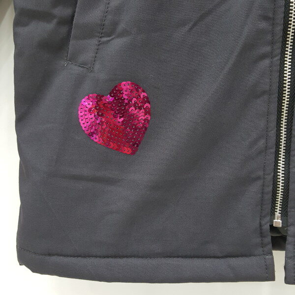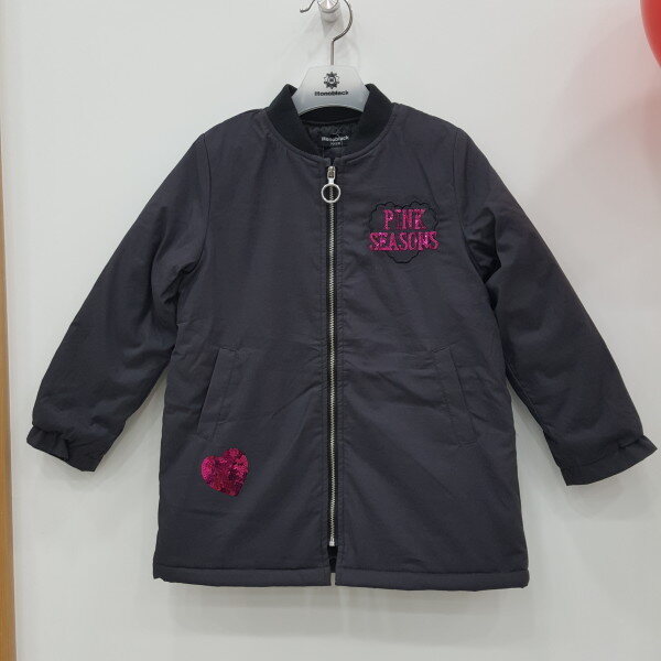 롱패딩점퍼입니다 안쪽에 팔까지 패딩처리가되서있어 봄가을 쌀쌀한 간절기에 좋습니다~~앞면의 하트와글씨는 스팽글로 되어있어 더욱 예쁩니다~~