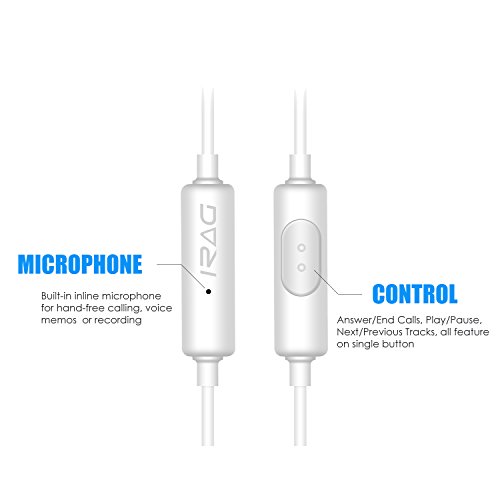 -. Binding : Electronics -. Brand : iRAG -. Color : White -. EAN : 0600978409821 -. Feature : Premium performance earphones easily fits in your ear with comfort. / High performance speakers deliver rich bass and precise treble. / Multifunction Control: Answer Call | End Call | Next Track | Previous Track | Pause & Play [No Volume Control] / Enjoy full listening comfort with soft, snug earbuds that conform instantly to your ears. / Designed by iRAG to work perfectly with all your devices: Apple iPhone, iPod, iPad, Android Smartphone and Tablet, Windows Smartphone and Tablet, MP3/MP4 Player, PC Computer, Notebook and many more portable music players. -. Label : iRAG -. Manufacturer : iRAG -. Model : 592W -. MPN : LYSB01BZ85NCK-ELECTRNCS -. PackageQuantity : 1 -. PartNumber : LYSB01BZ85NCK-ELECTRNCS -. ProductGroup : Wireless -. ProductTypeName : PHONE_ACCESSORY -. Publisher : iRAG -. Studio : iRAG -. Title : Earphones with Microphone 592W Premium Earbuds Stereo Headphones and Noise Isolating Made for iPhone iPod iPad Samsung Galaxy LG HTC -. UPC : 600978409821
