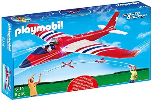 -. Feature : Throw, glide, and catch / The patriotic red, white, and blue Star Flyer offers tons of outdoor action at any time of day / With working LED lights, this glider can be seen even in the dark, extending the play time fun! Seat the PLAYMOBIL pilot in the glider's cockpit and watch it soar through the air / Throwing is easy with the recessed grip on the bottom of the glider / Made from an ultra-light aerodynamic material, this glider can even be used to play catch