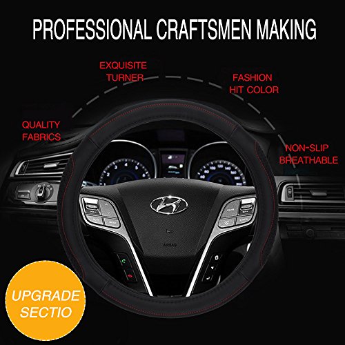 Made of microfiber leather; The material is soft ,odorless ,natural, durable, eco-friendly and healthy; A rubber inner, give the cover more grasp for the steering wheel, and also give you more safe driving when you want to make a turn or driving for long time