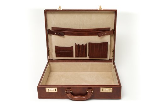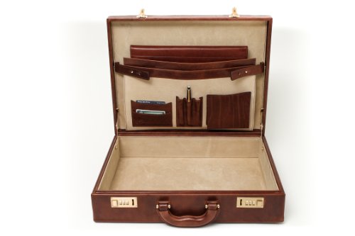 Studio : Tony Perotti Publisher : Tony Perotti Product Description The Amalfi Leather Attache Case is an exquisite and elegant work of Italian craftsmanship. This is a larger version of the Amalfi Attache Case. The Full Grain leather is molded around a solid wood frame, providing a beautiful finish. This midsize attache case is ideal for anyone looking to exude professionalism and class, while still getting the most out of your case-it has ample space to fit a Laptop up to 15" and still carry all of your belongings. The rigid structure and robust closing mechanism ensure the contents inside the case are well protected. Top quality and superior hardware, features dual combination lock, sturdy and easy to open hinges, bottom legs for protection, comfortable and easy to grasp top handle. Attache case features two adjustable document folders, cellphone holder, three business and credit card holders, and three pen holders. Dimensions: Exterior: 18"(L) x 14"(H) x 5"(W). Interior: 16.5"(L) x 13"(H) 3"(W).The Amalfi Leather Attache Case is part of our Tony Perotti Italico leather collection, made from Italian adult Bull hide Full Grain leather, providing a durable, stronger and longer lasting leather that is smooth to the touch with a shiny glossed finish. The cool Italian weather prevents any flea or tick irritation to the animals attributing to the top quality and purity of the leather, devoid of any scratches or bites on the leather. Tanned in a heavy coating of different eco-friendly vegetable oils to prevent everyday scratches and blemishes, the natural surface of our full grain leather burnishes and beautifies over time. Our Italico collection products come in a signature plaid interior lining for added style and fashion.Our Tony Perotti products are backed by a limited lifetime warranty. Please contact the Distributor Tony Perotti USA. 0