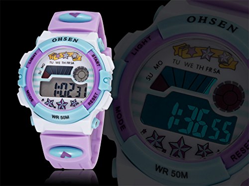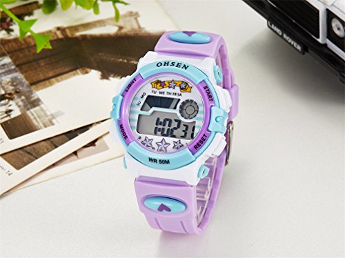 -. Title : Vavna TOP Sale Unisex Fashion Digital Quartz Wrist Watch Kids 50M Waterproof Silicone Strap LCD Back Light Alarm Clock - Purple