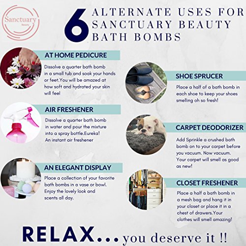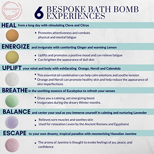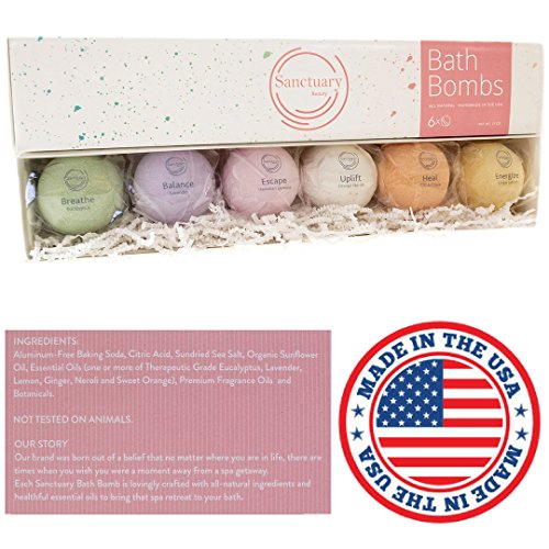 Studio : Sanctuary Beauty Publisher : Sanctuary Beauty Binding : Misc. Product Description Tired after a long day at work? Looking for the perfect way to escape and relax the stresses of life away? Here at SANCTUARY BEAUTY, we have just what you're looking for! Each Sanctuary Beauty Bath Bomb is lovingly crafted with all-natural ingredients and healthful essential oils to bring that spa retreat to your bath! At Sanctuary Beauty we take pride in sourcing the finest ingredients from the USA, manufacturing in the USA, and we NEVER test on animals. We're paraben-FREE, phthalate-FREE, and FREE of artificial colors or scents! In each box, you'll find six unique experiences for you to relax, soothe, heal, calm, and hydrate mind, body, and soul. You are sure to find a bath bomb in our gift set that will give you the relaxation you deserve. We put 100% into satisfying each and every new and loyal customer. So What are you waiting for? Invest in yourself! Click on the 'add to cart' button while supplies last! 0