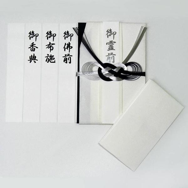 | セット内容 | ・本体(金封) ・中袋1枚(多当折りタイプ・お札が100枚程度まで入ります) ・短冊5枚(御霊前/御佛前/御布施/御香典/無地) |