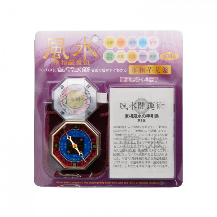 玄関、居間、台所、風呂場などの間取りの吉凶が簡単に分かる10枚の家相盤が付属しています。コンパスに家相盤をのせるだけの手軽さです。