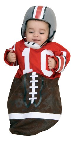 -. Feature : Baby Football Player Bunting and Headpiece (Approx. 0-6 mos see msmsts) / Red Jersey and Faux Leather (weathered) bottom portion. / 100% Polyester / Approximate Measurements: Chest 25-26", Waist 24-26", Length 26".