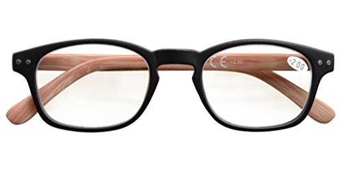 -. Feature : PRODUCTS DIMENSION-Frame material: Plastic,Lens width: 1 13/16" (46mm),Frame width: 5 5/16"(135mm),Lens height: 1 3/8" (35mm),Frame height: 1 9/16" (39mm),Bridge (DBL): 9/16"(15mm),Temple length: 5 5/16"(135mm),SP.R.Ing hinge: Yes,Lenses: Aspheric,Head size: Narrow to Medium. Rx-able frame. / EYEKEPPER BAMBOO WOOD-LOOK ARM READING GLASSES-the pupil distance(PD) is 59-63mm,the deviation for pupil distance(PD) less than 2mm,the deviation for strength less than 0.02,the deviation for lenses's horizontal line less than 1mm / EYEKEPPER READING GLASSES-5 packs at 1 Low P.R.Ice,Sets come in 1 power of your choice. These are not mixed powers.Acrylic Lens and Optically Correct.SP.R.Ing hinges for more comfortable fit, look good on any face. Tinted lenses - great for outdoor reading / QUALITY PLASTIC FRAME -FDA Registered Reading Glasses and Eyewear,Accord with ANSI Z80.3-2010,Accord with BS EN ISO 12312-1:2013 and EN14139:2010,Accord with AS/NZS 1067:2009,Top quality plastic frame,lenses and have sP.R.Ing-loaded hinges / LIFETIME BREAKAGE WARRANTY&30 DAY MONEY BACK GUARANTEE: In case any broken problem happens, contact the seller of Eyekepper without hesitation to solve the problem until satisfaction. Eyekepper provides lifetime after sale service for all Eyekepper reading glasses. Customers can return and get refunded for any reason. You have no risk to try