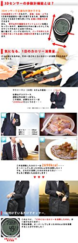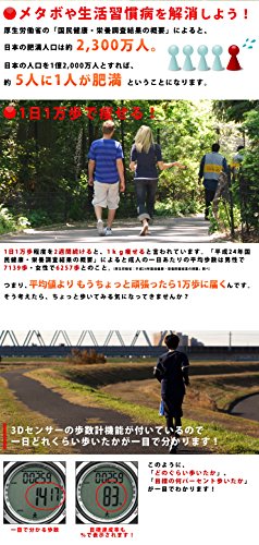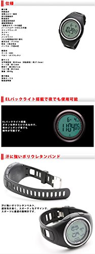 【機能】歩数表示 消費カロリー表示 走行距離表示 時速表示 目標達成率表示 運動時間表示 1週間分のデータの確認 パーソナルデータの入力可能 ストップウォッチ タイマー アラーム バックライト 12/24時間表示切り替え