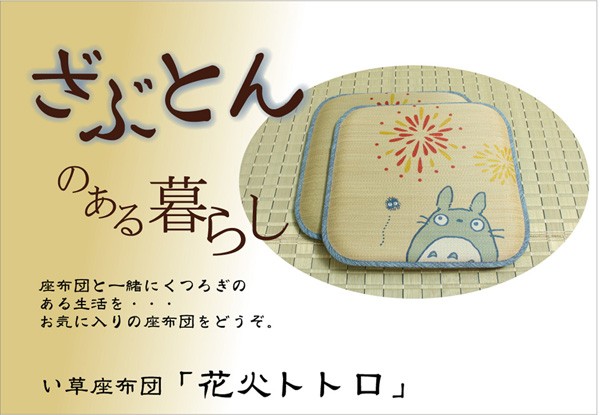 【商品名】純国産/日本製 捺染アドラ い草座布団 『花火トトロ 2枚組』 約55×55cm×2P