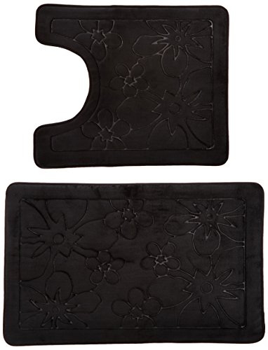 maiija Non-slip Embossed Memory Foam Contour Bathmat Set 20x24+20x32 Black