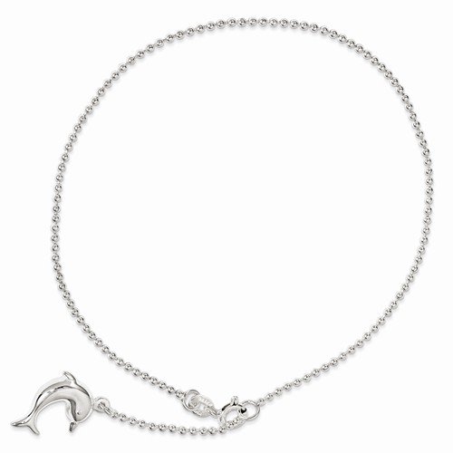 Solid 925 Sterling Silver 10inch Polished Dolphin Anklet Bracelet 10"