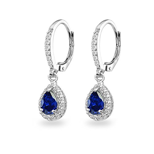 Sterling Silver Genuine, Created, or Simulated Gemstone Teardrop Dangle Halo Leverback Earrings with White Topaz Accents