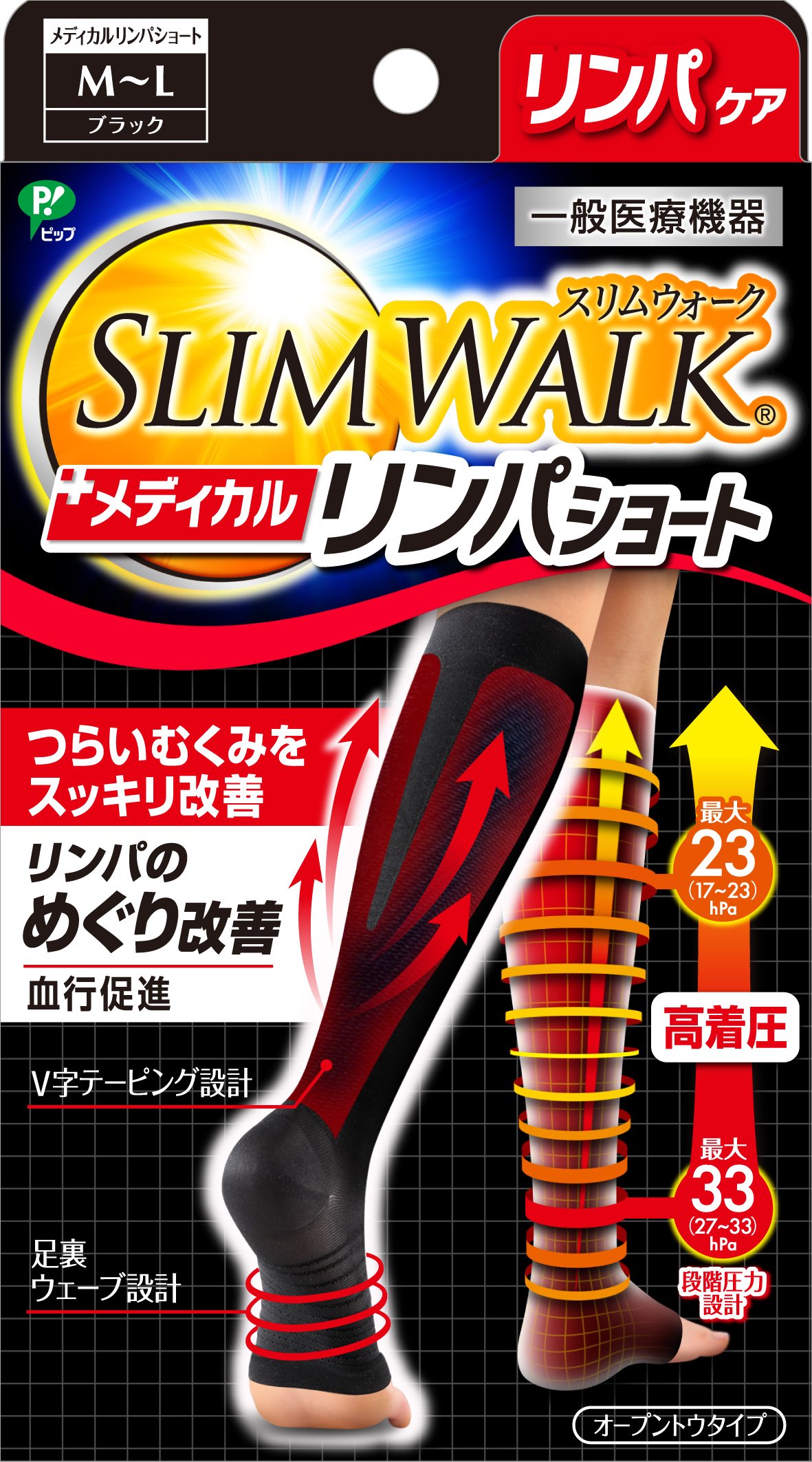 Japanese socks and tights Slim Walk Medical lymph socks Short Black M ~ L size *AF27*