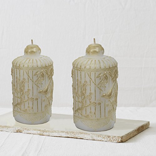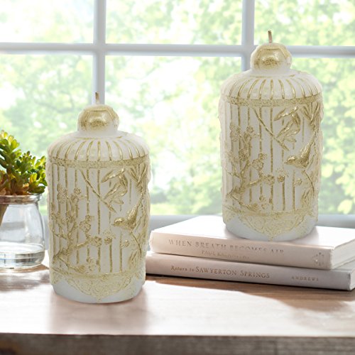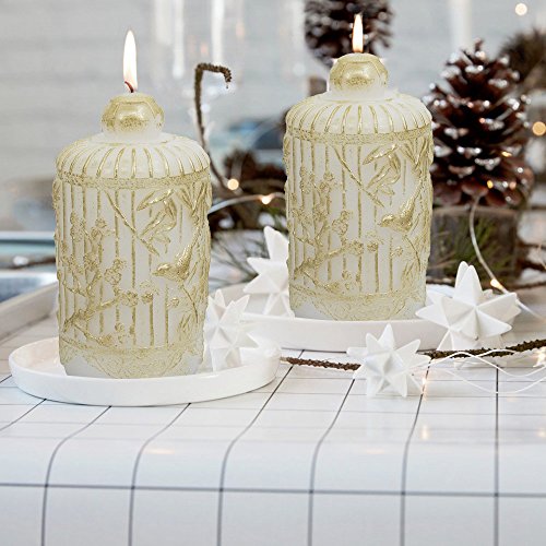 White Candle Set 2 6.5", Table Decorations Holiday Decor Gifts for Her, Handcrafted Bird and Leaves