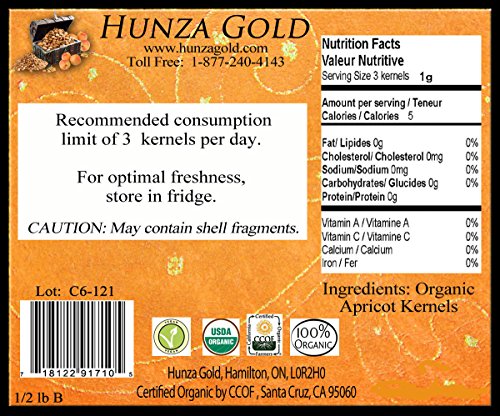-. Title : Hunza Gold Certified Organic Bitter Apricot Kernels - 1/2 Lb (227 G)