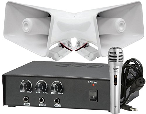 Pyle KTPMSA20HM Pair of 8'' Indoor / Outdoor 65 Watt PA Horn Speakers w/ 50 Watt Power Amplifier & Handheld Microphone