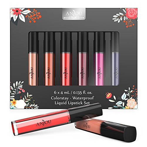 Anjou 6 Colors Matte Liquid Lipstick Set, Long Lasting Creamy Waterproof Lip Gloss, All-Day Smudge Proof Makeup with Non-Toxic Formula, Christmas Gift for...