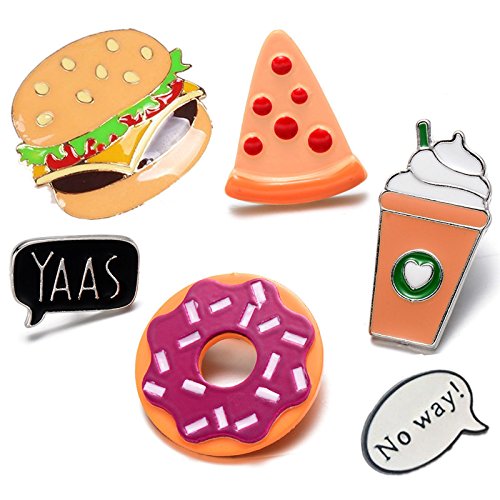 A set of 6 pcs high-polish Pins with Enamel Designs Featuring,Include Donut Mini Pin, Icecream Enamel Pin ,Pizza Lapel pins,Dialog box Clothes Brooch Pins and hamburgers Metal Lapel Pin Badge,