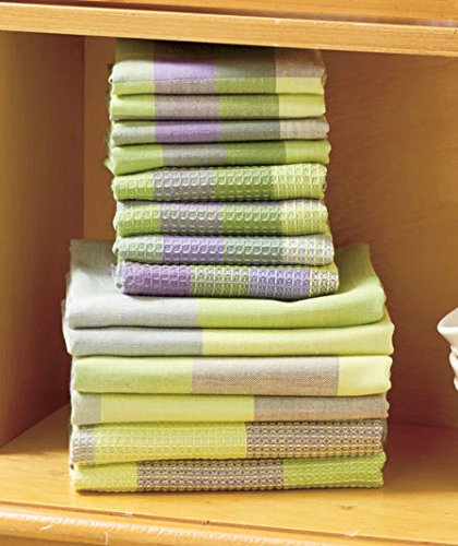 14 Pc Lavender Green Woven Cotton Kitchen Plaid Check Towel & Dishcloth Sets