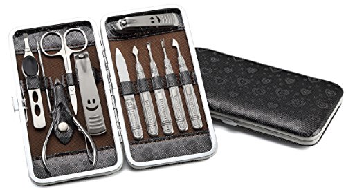 Keiby Citom Professional Stainless Steel Manicure Kits Nail Clipper Pedicure Set Colorful Heart To Heart(Black)