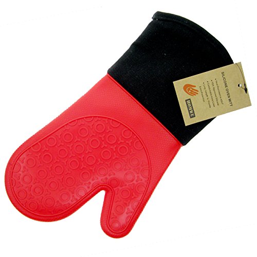 Silicone Oven Mitts with Quilted Cotton Lining - Professional Heat Resistant Potholder Kitchen Gloves - 1 Pair (Red) - Homwe