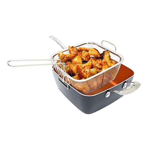 -. Feature : Set includuds: Deep Square Pan, Lid, Fry Basket, Steam Rack and downloadable PDF Link of 50 cooking recipes / The patented Ti-Cerama coating eliminates the need for oil or butter as food easily releases from it's extreme non-stick surface - it is like cooking on air! / Oven safe up to 500º F