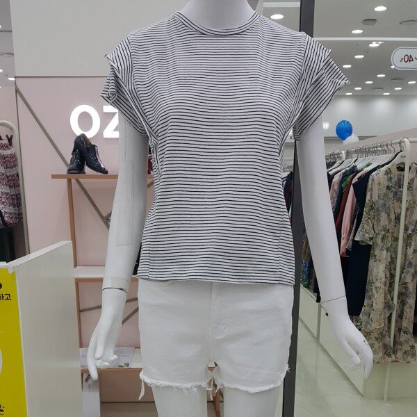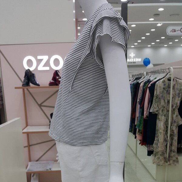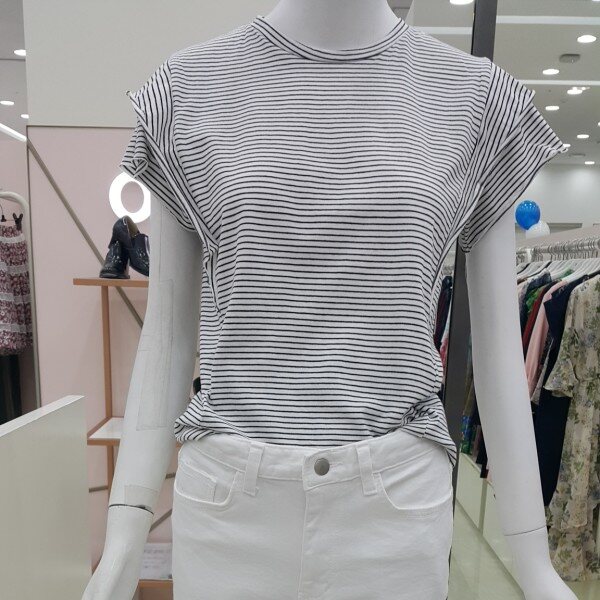 잔잔한 스츠라이프의시원한 티셔츠예요비침 전혀 없음가슴둘레90총기장53