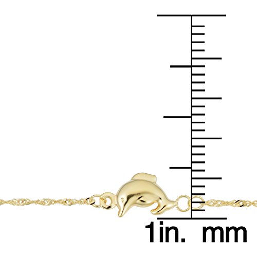 -. Feature : MADE OF 14K YELLOW GOLD / EYE CATCHING STATION STYLE. This gold anklet features a charming dolphin station that is simply eye catching / ADJUSTABLE LENGTH FEATURE. The gold Singapore chain in this gold dolphin anklet can be adjusted from 9 inches to 10 inches / THE PERFECT SUMMER ACCESSORY. A gorgeous gold jewelry that compliments dresses, skirts, shorts, short pants, and the likes, this 14k gold anklet is a must have