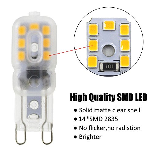 - √● Output Voltage: AC 100-130V, not-dimmable bulb with G9 base, SMD2835 14 LEDs, can reach 220-280 lm