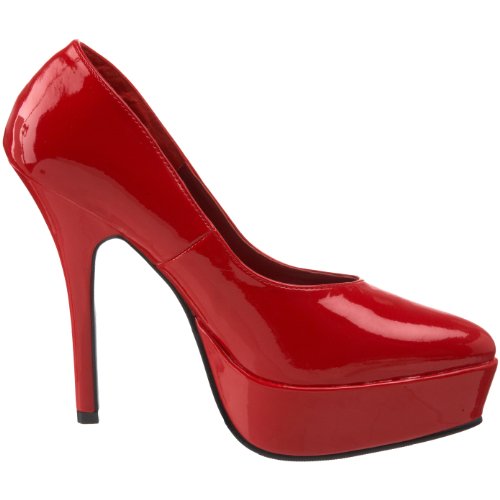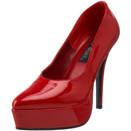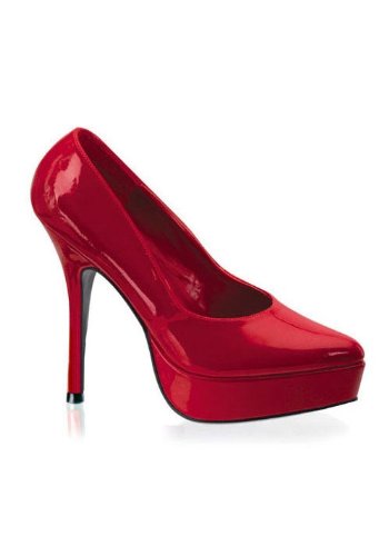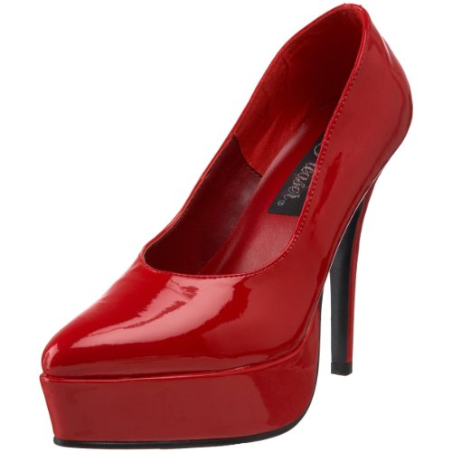Amazon.com Indulge your sexy side with this deliciously provocative pump from Pleaser. It features a sleek, glossy upper with a pointed toe atop a thick platform and towering heel creating an alluring silhouette. 0