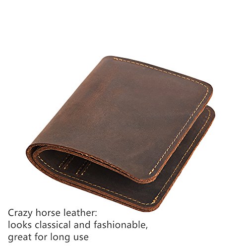 -. Feature : RFID wallet for men RFID BLOCKING protected outside the wallet and even On each layer. With the new identity theft, a RFID protective wallet is very necessary! we leverage mens credit card wallet top RFID technology to block RFID signals used to electronically scan your wallet as someone passes by unnoticed. This RFID wallet keeps your vital information in driver license, debit cards and credit cards from being stolen, our RFID blocking wallet is very good for travel protection. / SLIM WALLET DESIGN: you simply MUST have it! Our security wallet Only sizing 3.5" X 3.9" X 0.59" SLIM Profile DESIGN RFID blocking wallet allows for front pocket or rear pocket storage. Even with its slim design, It features with quick access 4 card slots with thumb holes for you to place your most frequently used cards, 1 compartment to hold dditional cards, receipts or unfolding cashes. ideal for when you only need to carry a few cards and several bills. / This is a RFID protection wallet SUPERIOR QUALITY well design, good crafted and durable credit card protector wallet, card slots can slide cards in/out well, individually hand-made with strong inner lining stitching that trained experts personally inspect to ensure a durable, high quality build. / 100% GENUINE LEATHER: Top grade soft and luxurious genuine crazy horse leather, soft and incredibly durable. Our credit card protector wallet great for long use, as your wallet ages, it will develop a deep, rich patina adding to the appeal and character of the leather. / MINIMALIST STYLE, Simple life. A minimalist RFID protection wallet Simple low-key appearance and gorgeous colors, elegant, stylish, protector card case wallet perfect for business traveling, weekend getaways, school, and other outdoor activities in daily life. Our mens wallet is in Gift Box Packing, which is also one of the most special gifts for Groomsmen, Birthdays, Anniversaries, Father's Day, Christmas and other Special Occasions.