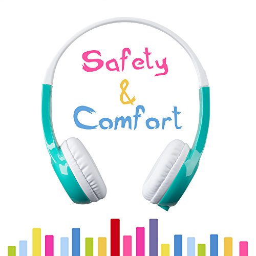 Mimoday Kids Headphones provide your kids the ultimate wonderful listening experience - without risk to their hearing or comfort! Specifically designed for youth teens ages 3 and up. Features: Volume-Limited to Protect Kids Eardrums Safty first: Volume is limited to a kid safe level of 85 dB that will well protect young children hearing. Parent will never worry about the music or movie being too loud for the little ones. Tough & Durable & Lightweight Kid-Friendly Design: The headphones constructed durable to be handled by kids, they will withstand rough or twisty play while staying lightweight, also a great alternative for kids who struggled with bulky headphones. Perfect gift to your boys and girls. Adjustable Headband & Soft Earpads Adjustable headband as needed to ensure the perfect fit, also with super soft earpads rest gently on the ears for staying comfortable. 3.5mm Jack & microphone Universally compatibility with a standard 3.5mm headphone jack, work with virtually all smartphones, tablets, kindles, video game systems. And the inline microphone let kids can stay connected to their companion with high-definition voice. Provide Top Sound Quality These kids headphones feature 30mm drivers to provide premium sound quality - a clear sound for childrens' music, audiobook program or movie/television soundtrack. Customizable attractive stickers Each kids headphones include 4 sets of stickers with seasons theme, the playful design makes kids can customize the headphones themselves, and easy to replace without any nasty residue. Specifications: Driver Unit: 30mm Driver Impedance: 100Ω +/- 15% Sensitivity: 85+/-3dB Frequency Response: 20-20KHz Cord Length: 1m Plug Type: 3.5mmFeature