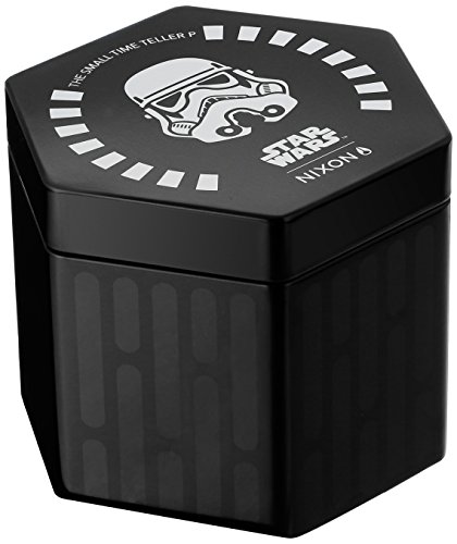 Built for the Star Wars enthusiast in your life, this small Time Teller Star Wars Stormtrooper watch from Nixon celebrates the elite members of the Galactic Empire. Featuring a 26mm case with custom caseback art, a custom seconds hand inspired by the Star Wars Stormtrooper blaster, and a locking looper post featuring the Stormtrooper icon, this timepiece reflects the essence of a Stormtrooper down to the smallest detail. Powered by a Miyota Japanese quartz 3 hand movement, this Star Wars Time Teller watch offers hardened mineral crystal protecting the black dial and 100 meter water resistance. A 14mm custom injection molded polyurethane watch band ensures the timepiece attaches securely and comfortably to your wrist for all day wear.Feature