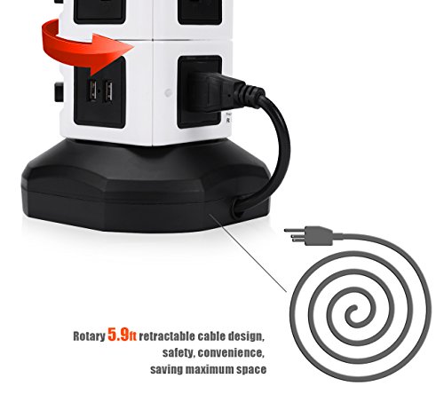 14 surge-protected outlets with 6 feet black retractable power cable perfect for your home or office