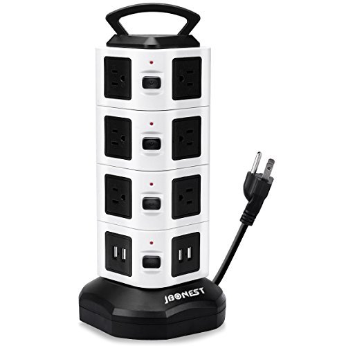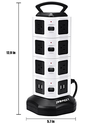 Handle design: this vertical tower power strip is convenient to place or move with handle, to eliminate the risk of electric shock hazard.