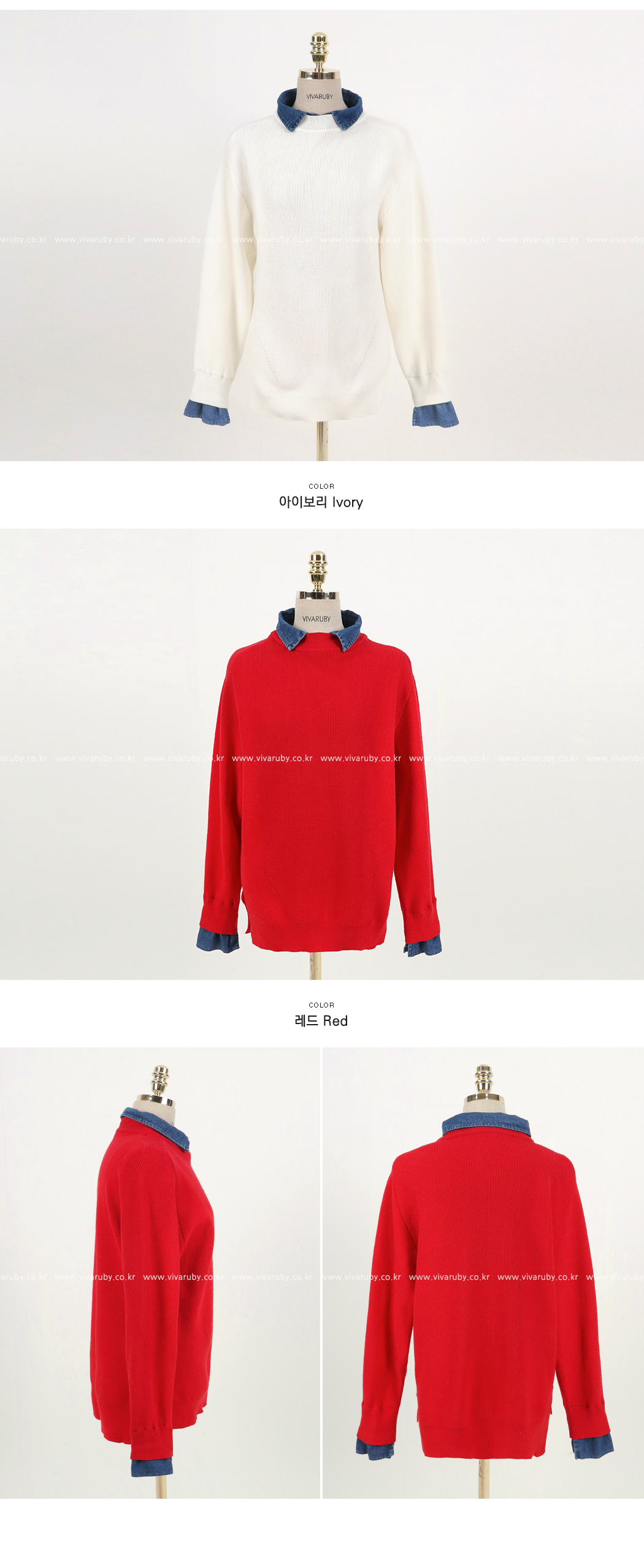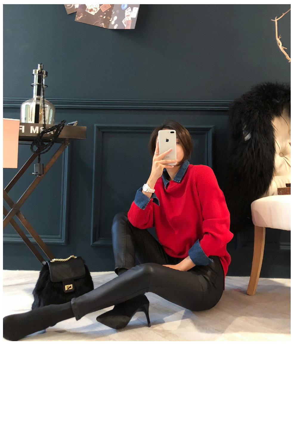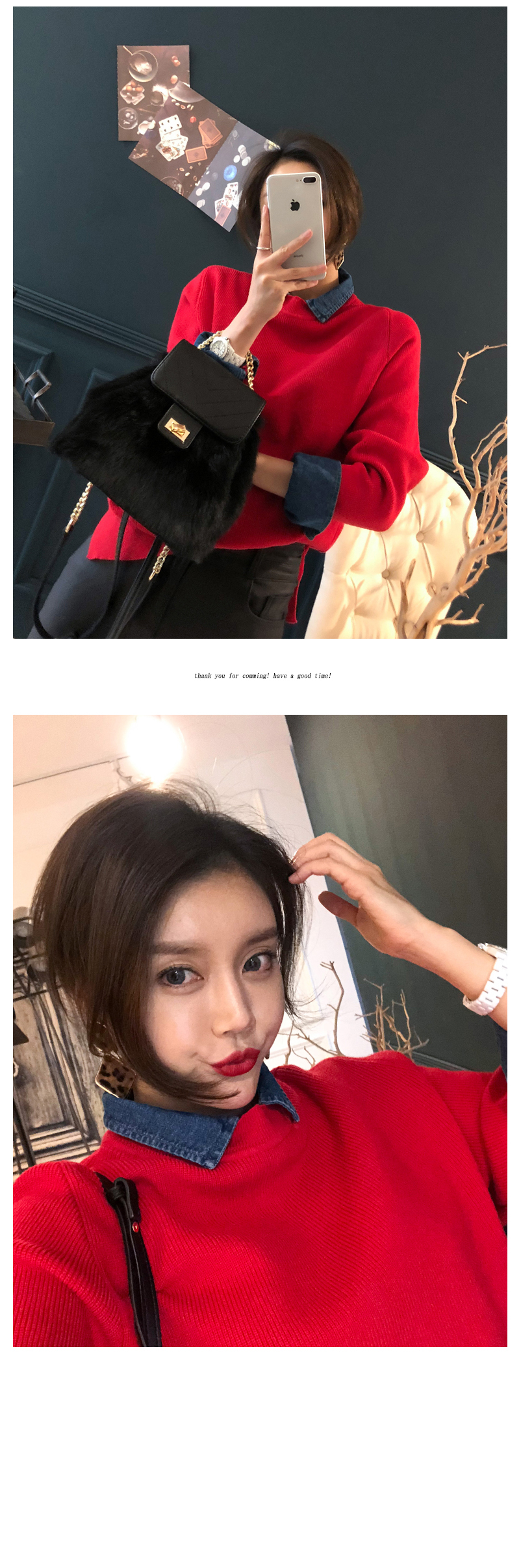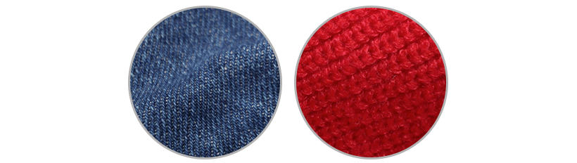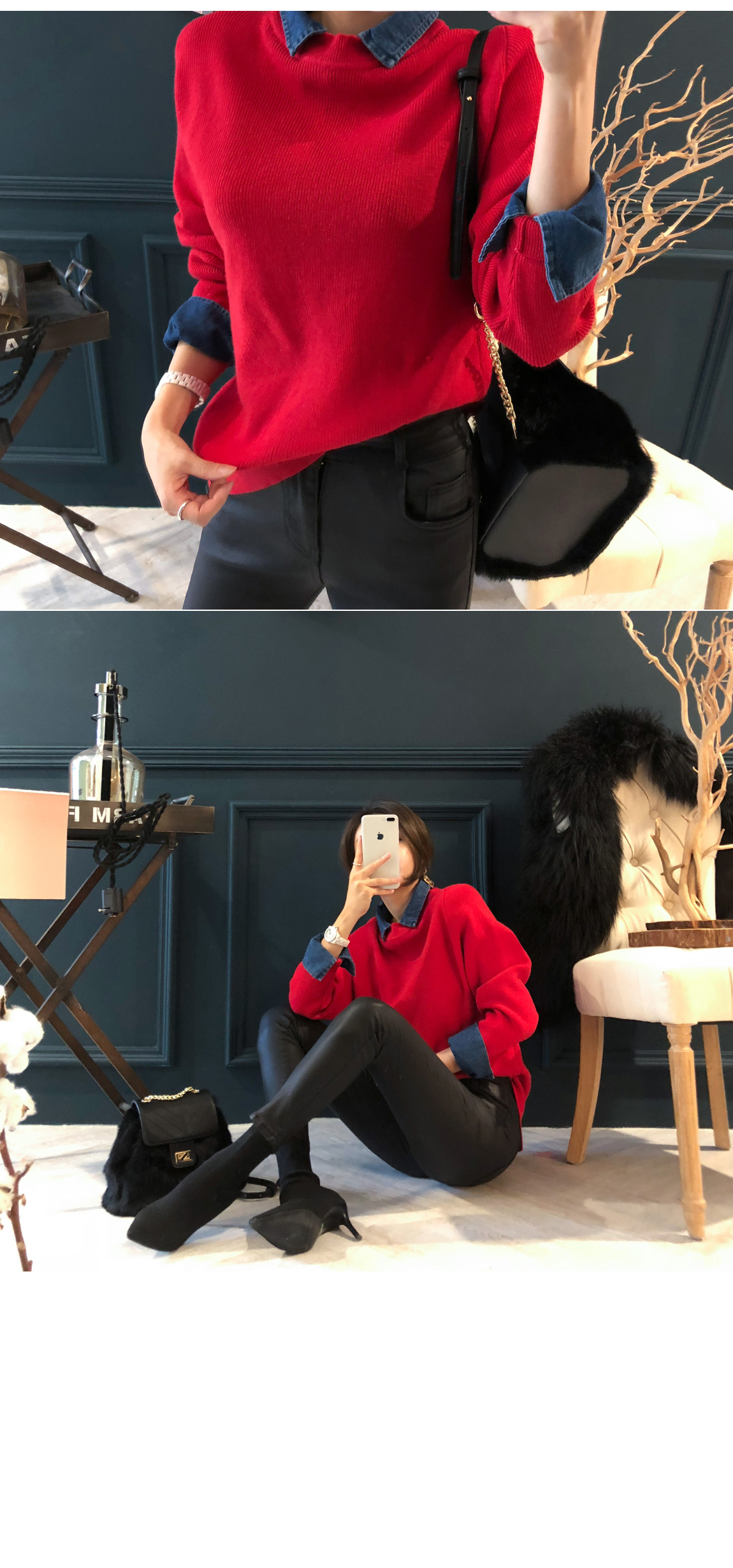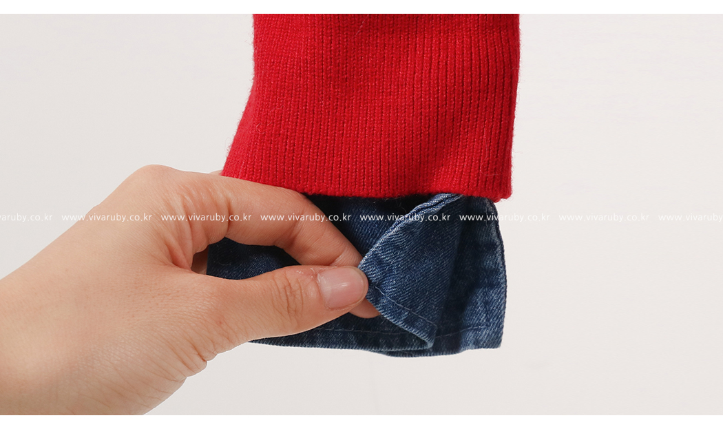 ニットとデニムをミックスして製作した重ね着