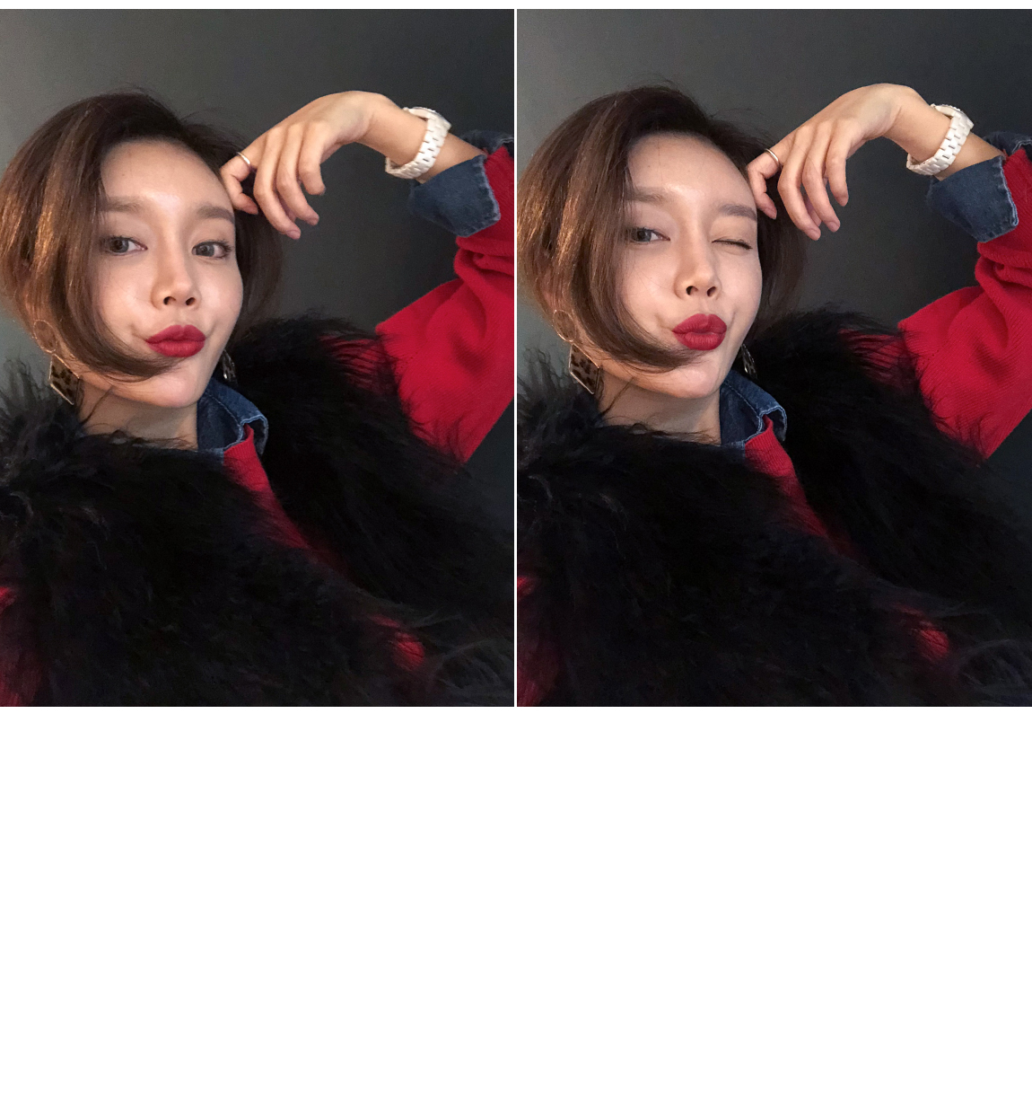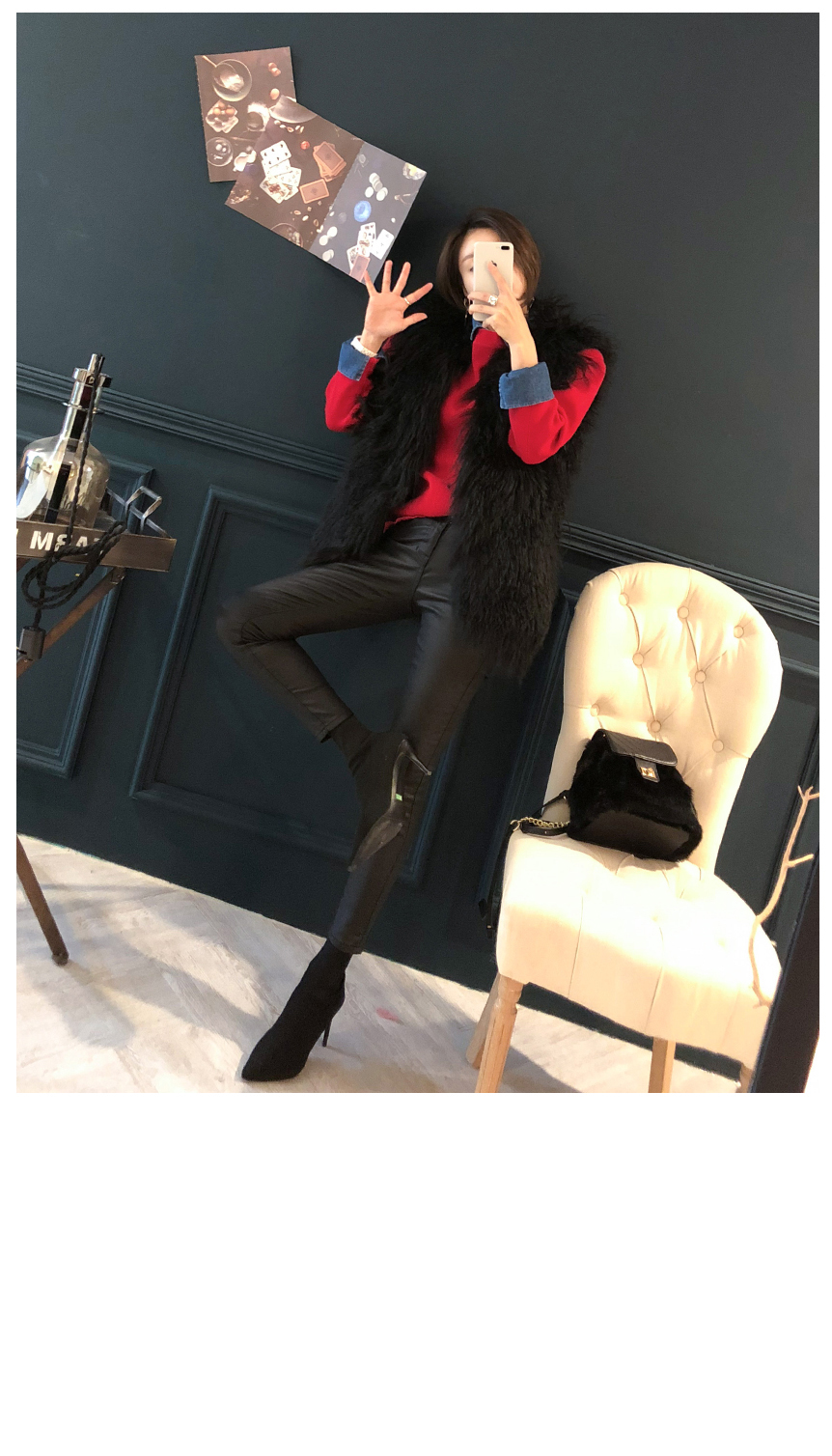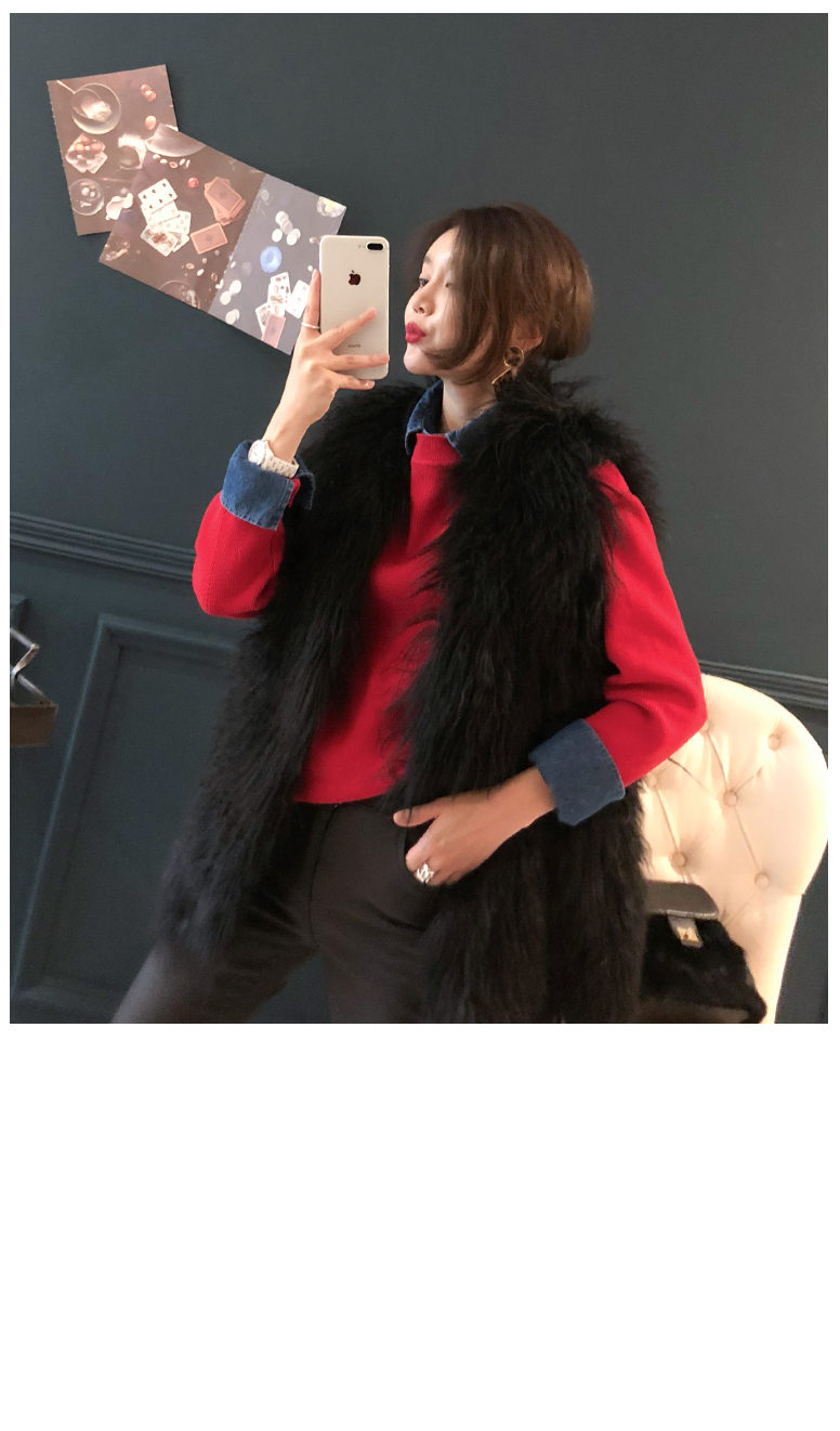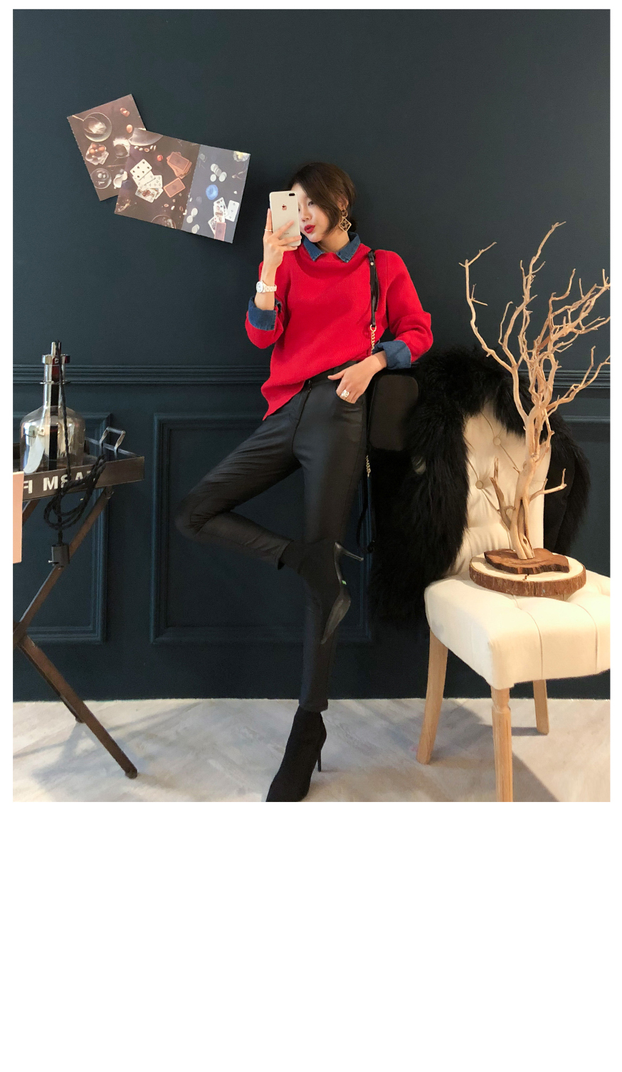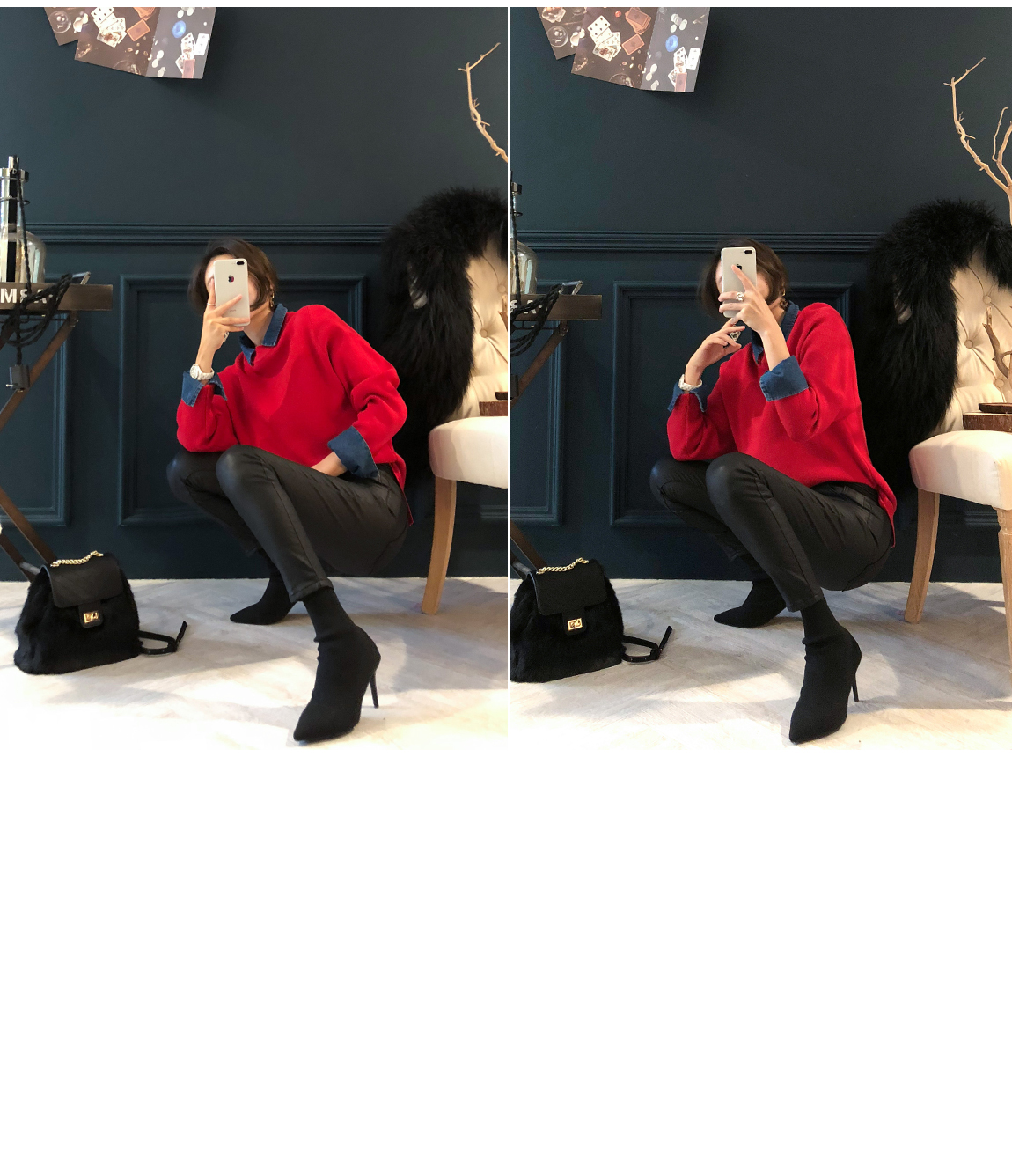 ニットとデニムをミックスして製作した重ね着