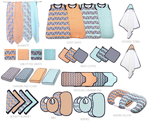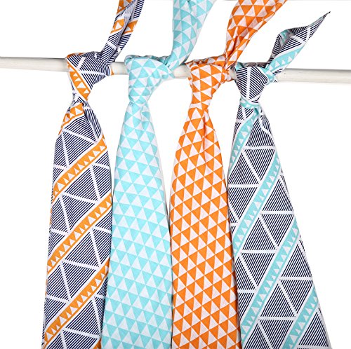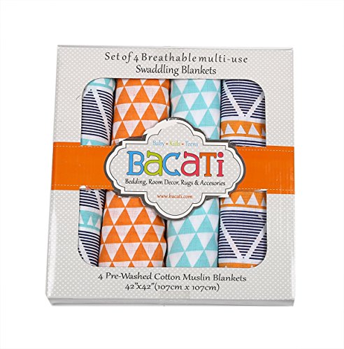 Bacati Liam Aztec Triangles 4 Piece Cotton Muslin Swaddling Blankets, Aqua/Orange/Navy