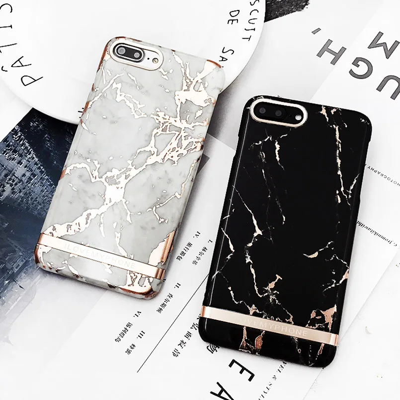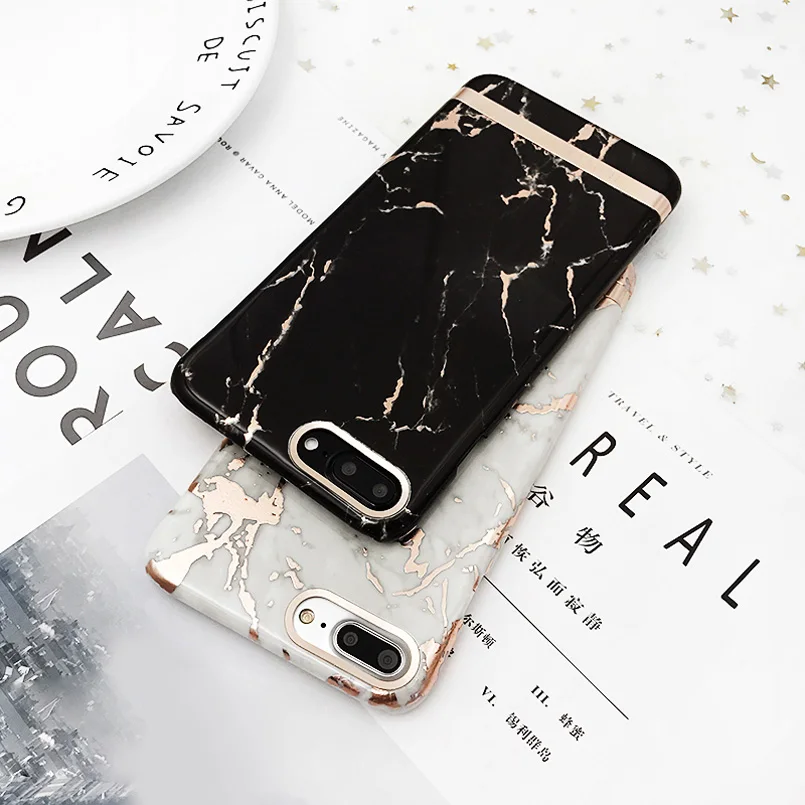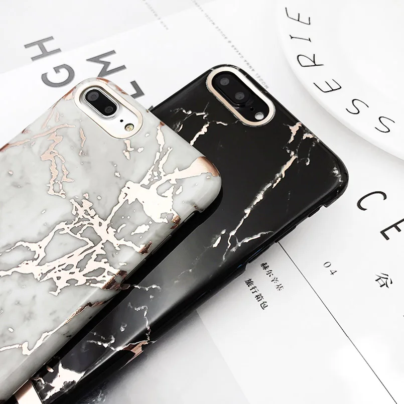 Feature:Fashion Gold Plating Marble Design Phone Case